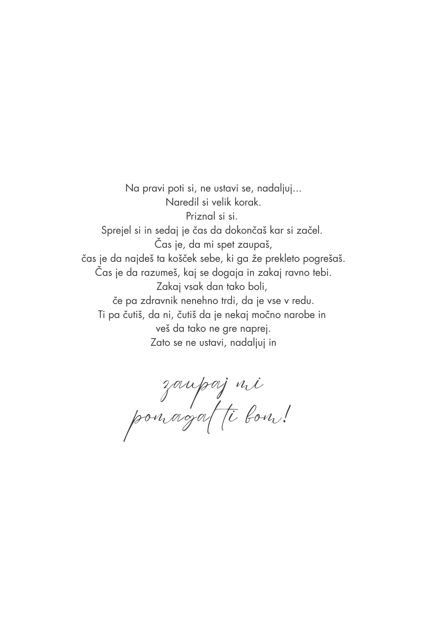 Piši mi. Vedno najdemo rešitev, ki je prijazna in varna zate.