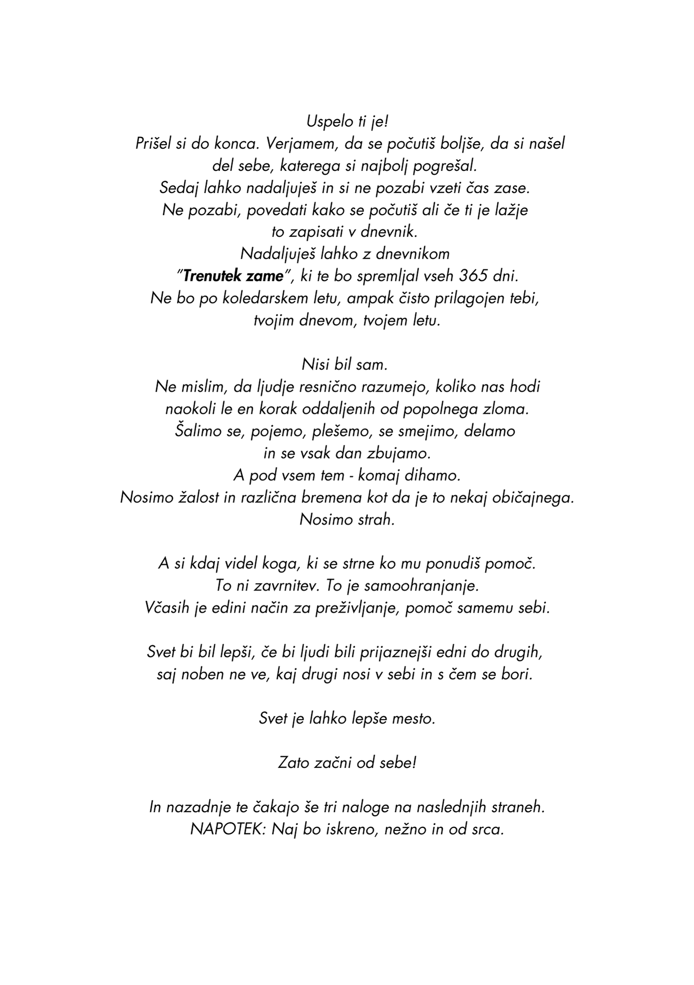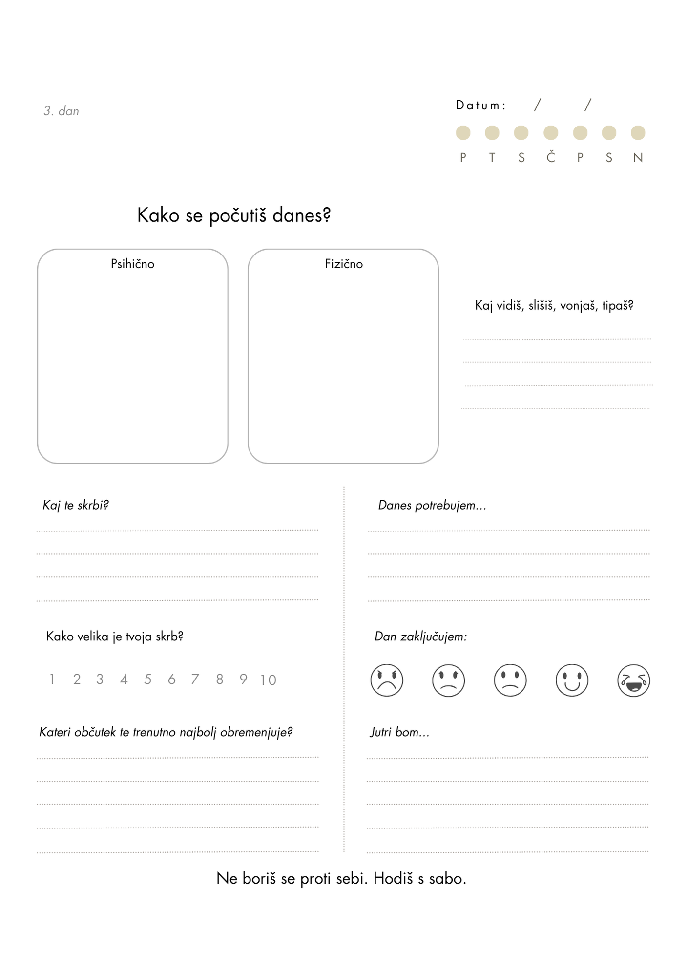 To je popolnoma v redu. Dnevnik te ne sili v rutino. Pišeš takrat, ko to potrebuješ. Strani niso datirane, zato se ti nikamor ne mudi.